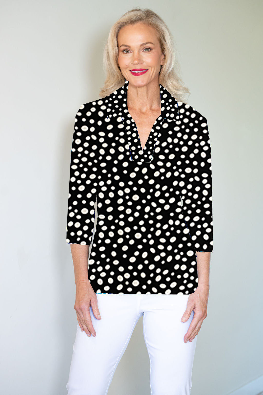 5194 S/S Crystal Trim Polo - Blk/Wht Spot